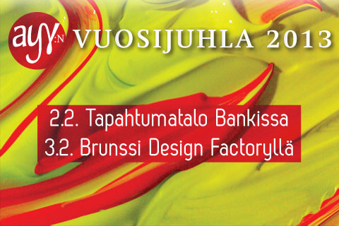 AYY:n kolmannet vuosijuhlat järjestetään lauantaina 2.2. Tapahtumatalo Bankissa. Ilmoittaudu mukaan osoitteessa vuosijuhlat.fi.