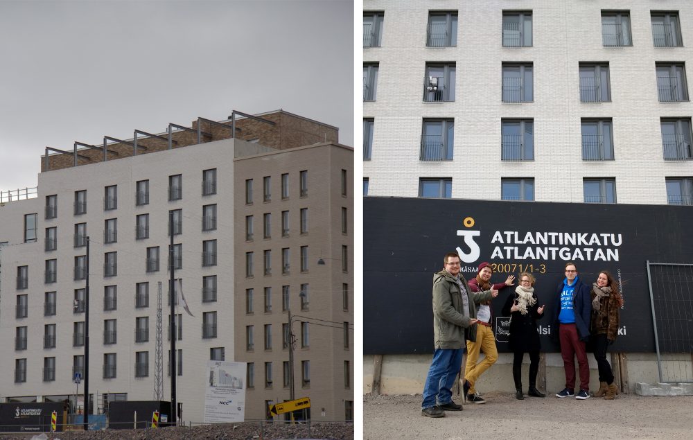 AYY:n hallituksen jäseniä tsekkaamassa Jätkäsaaren asuntoja maaliskuussa 2017