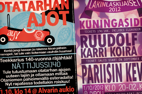 Suunnittele ja rakenna ei-moottoroitu ajoneuvo ja osallistu Otatarhan Ajoihin tai koe NättiJussi.140 Alvarin aukiolla. Illan hämärtyessä Dipolissa pamahtavat käyntiin Lakinlaskijaiset 2012!