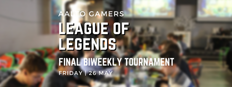 The last Aalto Gamers League of Legends tournament of this spring is here! This will be our fifth and last tournament for this series (Friday 26th May, 19:00-23:00, at the Design Factory Studio). The tournament will be fairly casual, so players of all levels are welcome to join. Come play, hangout, and meet new friends!
