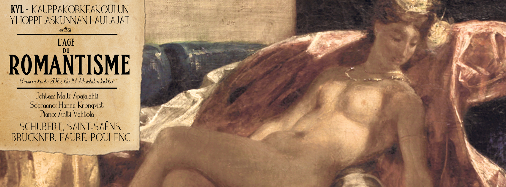 Kauppakorkeakoulun Ylioppilaskunnan Laulajat herättävät eloon Euroopan romantiikan ajan kauneimmat sävellykset ranskaksi ja saksaksi. Syksy hämärtyy. Tule pysähtymään hetkeksi sielukkaisiin sävellyksiin romantiikan mestareilta: Schubert, Saint-Saëns, Bruckner, Fauré ja Poulenc.