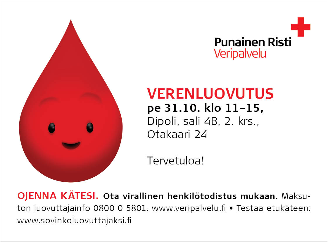 SPR Veripalvelu Verenluovutus Dipolissa Dipoli Otakaari 24 Otaniemi, Espoo 31.10.2014 11:00—15:00 SPR Veripalvelu