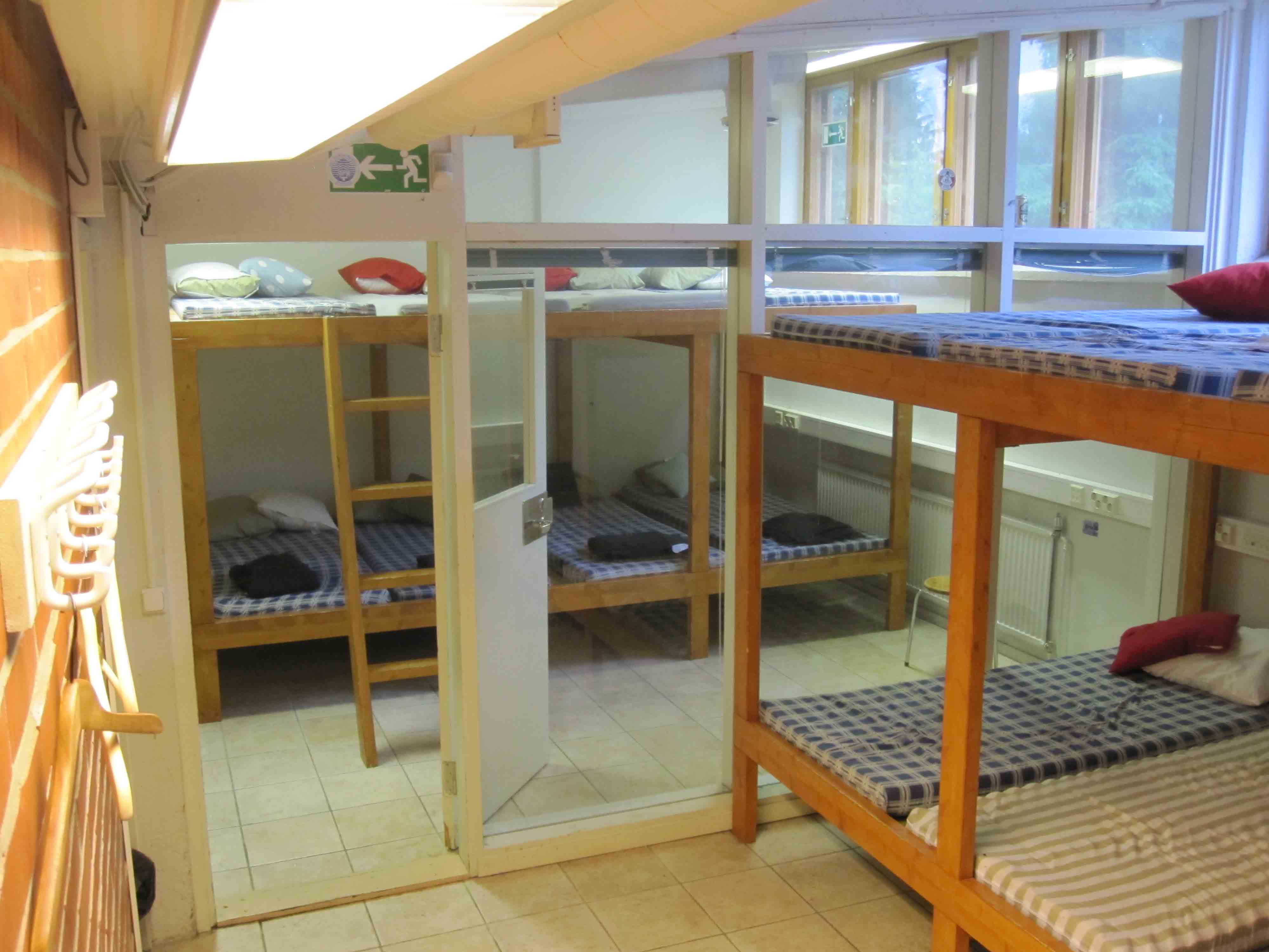 Iso ja pieni vierasmaja sijaitsevat talon kellarikerroksessa. Isossa vierasmajassa on 9 ja pienessä vierasmajassa 3 kapeaa kerrossänkyä. Lisäksi tiloissa on tyynyjä ja peittoja.