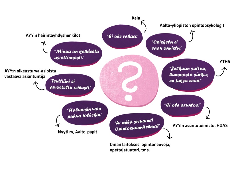 - Oma tutor/ISOhenkilö/fuksikapteeni – osaavat yleensä auttaa eteenpäin.