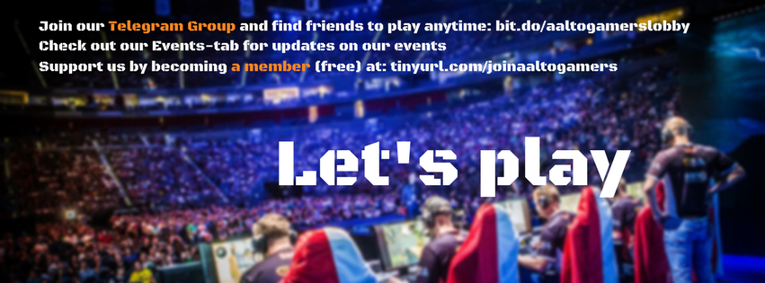 Liity Aalto Gamers Telegram-kanavaan, ja löydä pelikavereita milloin vain: bit.do/aaltogamerslobby