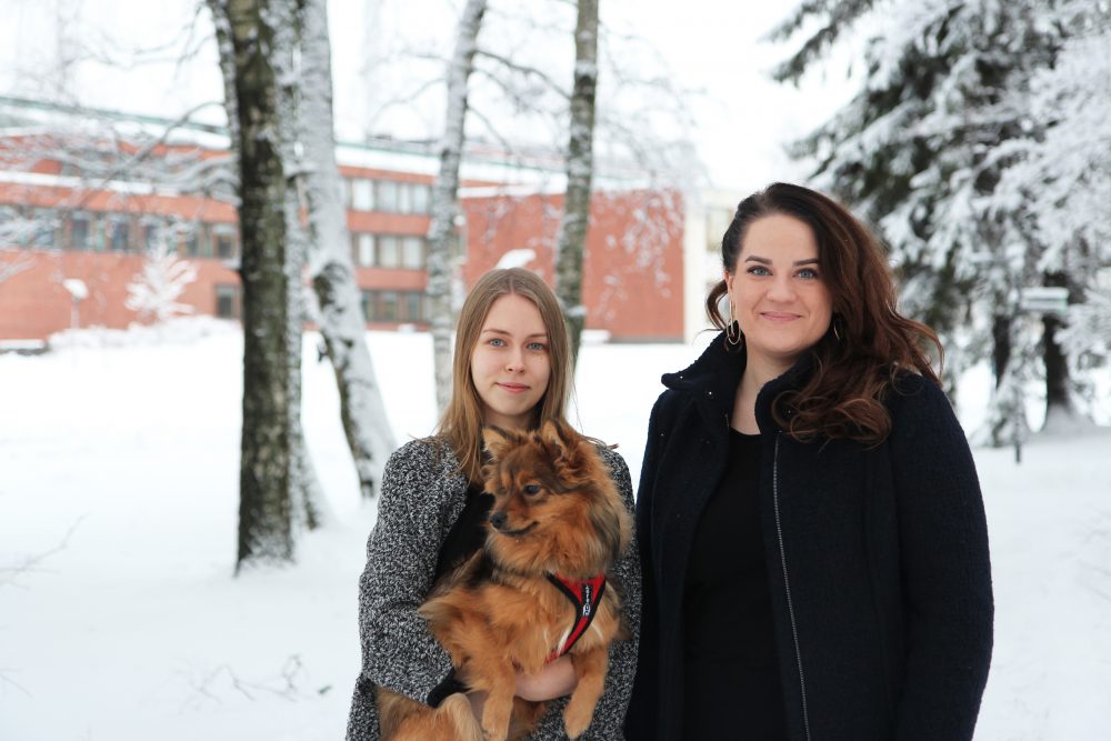 Milla och Neea konstaterar med en mun att AUS är en trevlig, informell arbetsgemenskap. ”Arbetsklimatet är toppen och de andra anställda hjälpsamma. Vi har fått ett fint välkomnande.” För Neea är det ett plus att hon kan arbeta vid sidan av studierna.
