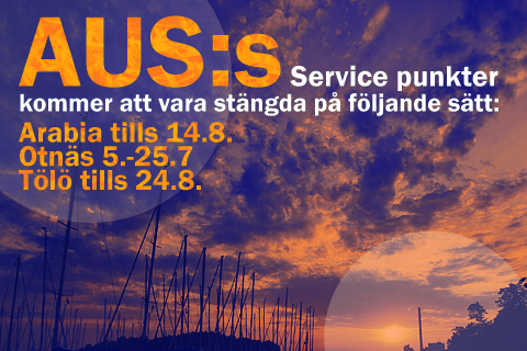 Servicepunkten i Arabia och Tölö är stängda i augusti också. Servicepunkten och bostadskontor i Otnäs betjänar normalt i augusti.